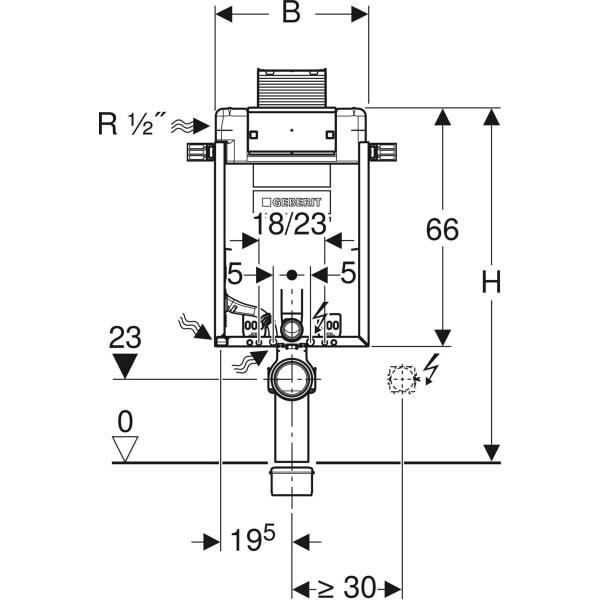 Asma klozet için Geberit Kombifix elemanı, 109 cm, Alpha 8 cm gömme rezervuar ile, destek ayakları ile