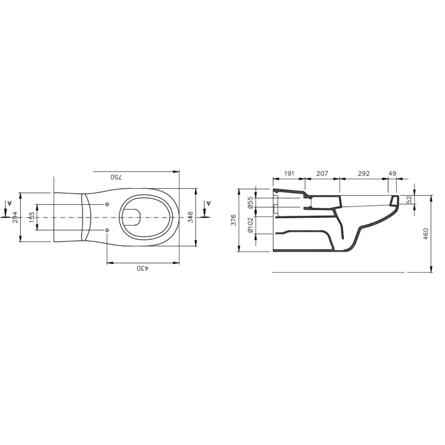 Yaşlı ve bedensel engelliler için önü kapalı 75 cm asma klozet