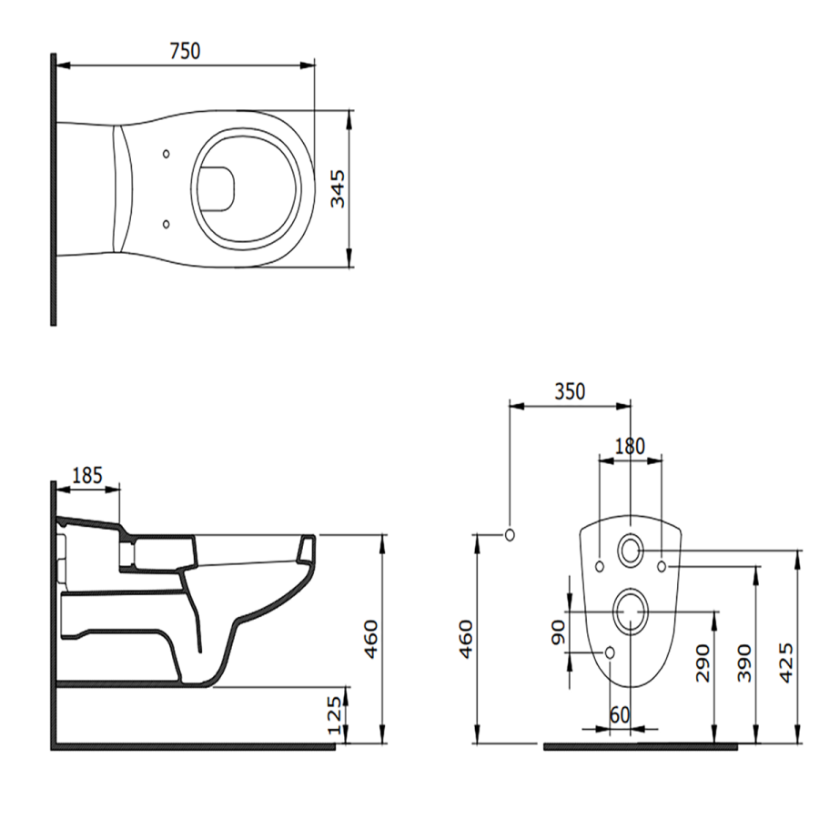 Yaşlı ve bedensel engelliler için önü kapalı 75 cm asma klozet