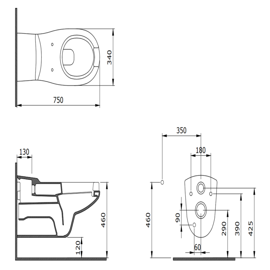 Yaşlı ve bedensel engelliler için önü açık 75 cm asma klozet
