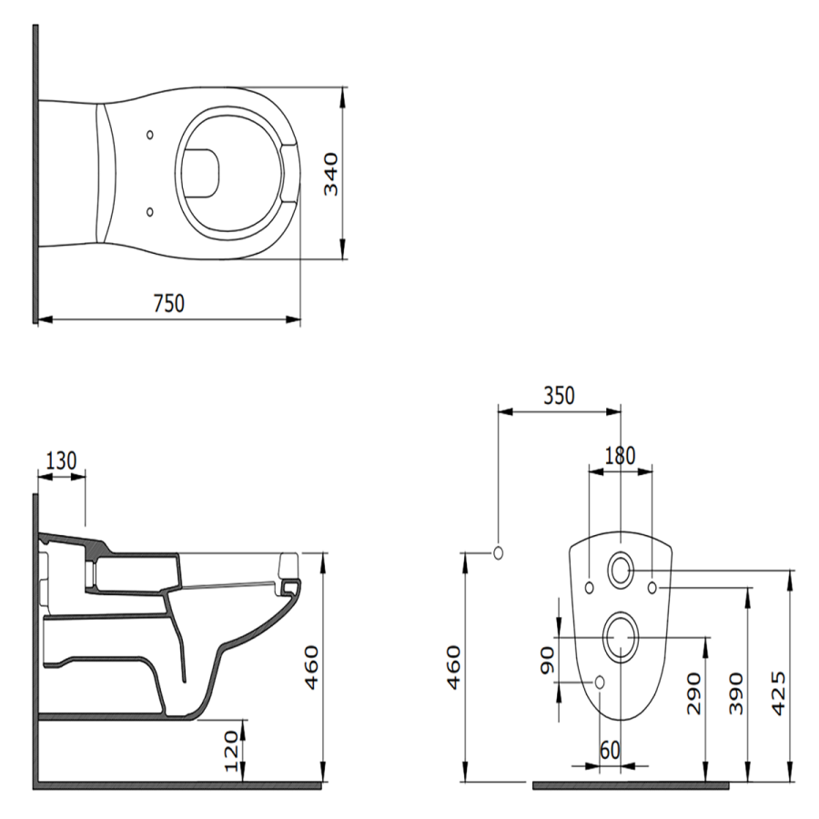 Yaşlı ve bedensel engelliler için önü açık 75 cm asma klozet