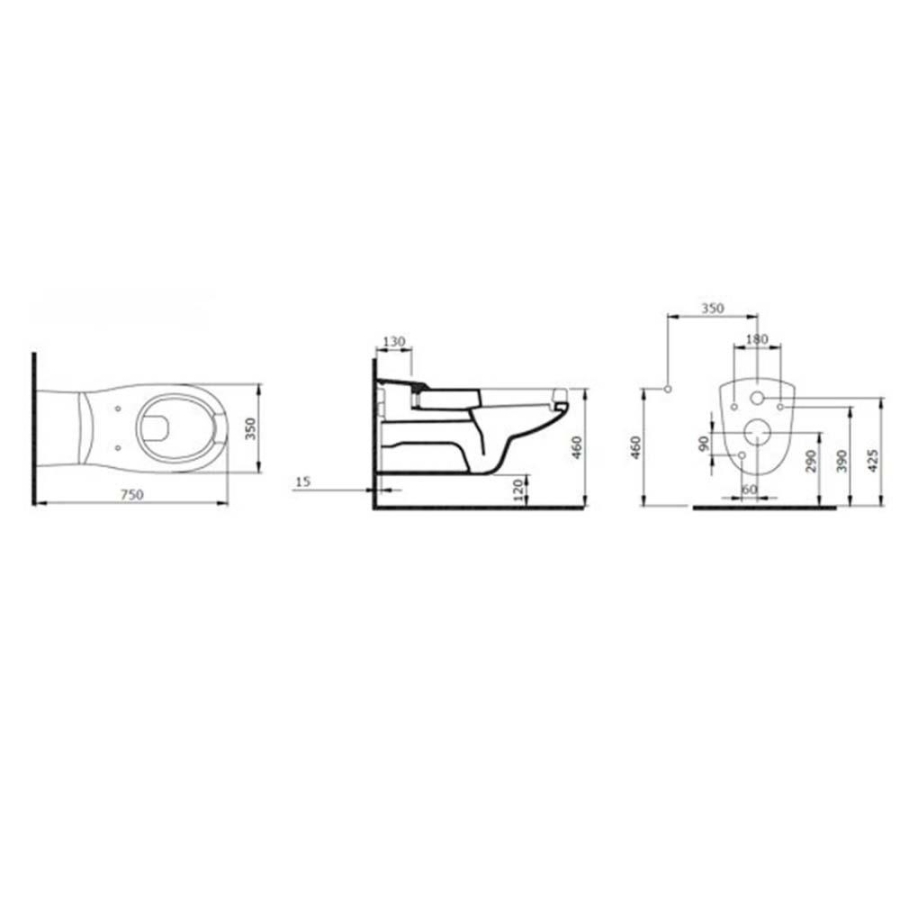 •Yaşlı ve bedensel engelliler için önü açık 75 cm asma klozet