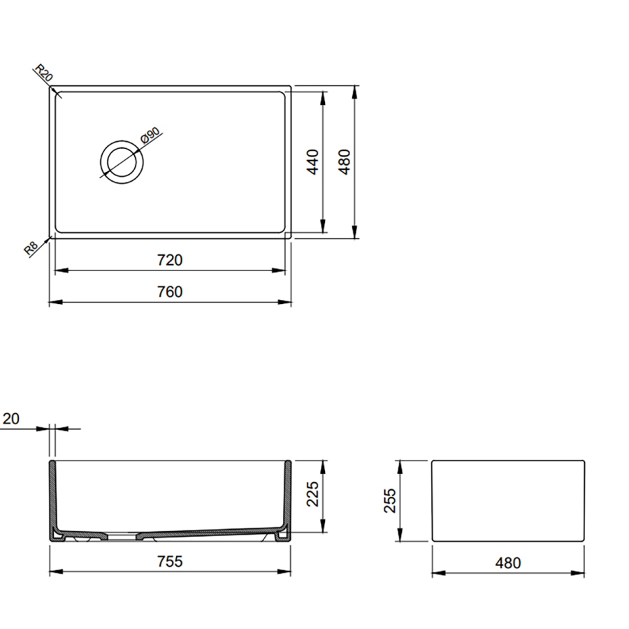 Bocchi Contempo 76 cm Mutfak Eviyesi Parlak Bisküvi