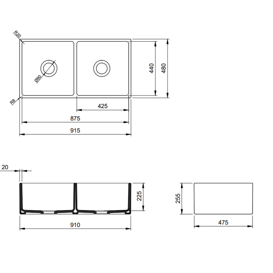 Bocchi Contempo 91 cm Çift Gözlü Mutfak Eviyesi Mat Gri