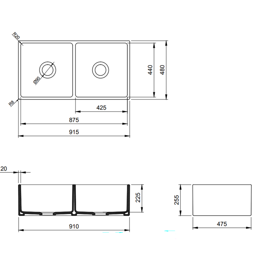 Bocchi Contempo 91 cm Çift Gözlü Mutfak Eviyesi Mat Kahve