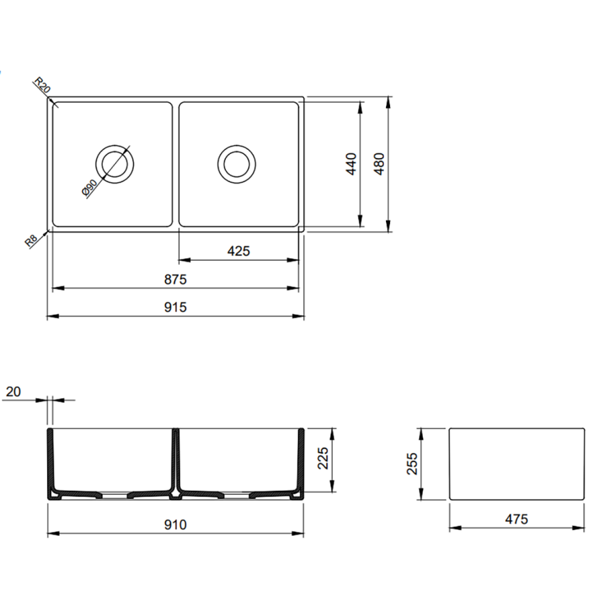 Bocchi Contempo 91 cm Çift Gözlü Mutfak Eviyesi Parlak Siyah