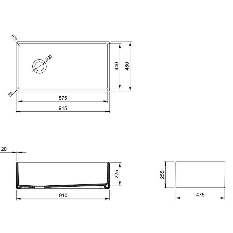 Bocchi Contempo 91 cm Mutfak Eviyesi Parlak Bisküvi