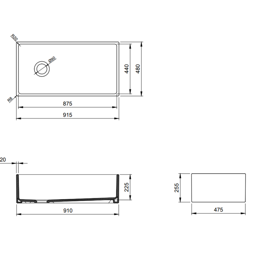 Bocchi Contempo 91 cm Mutfak Eviyesi Parlak Siyah