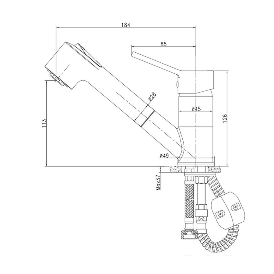 • Çıkış ucu yüksekliği: 113 mm