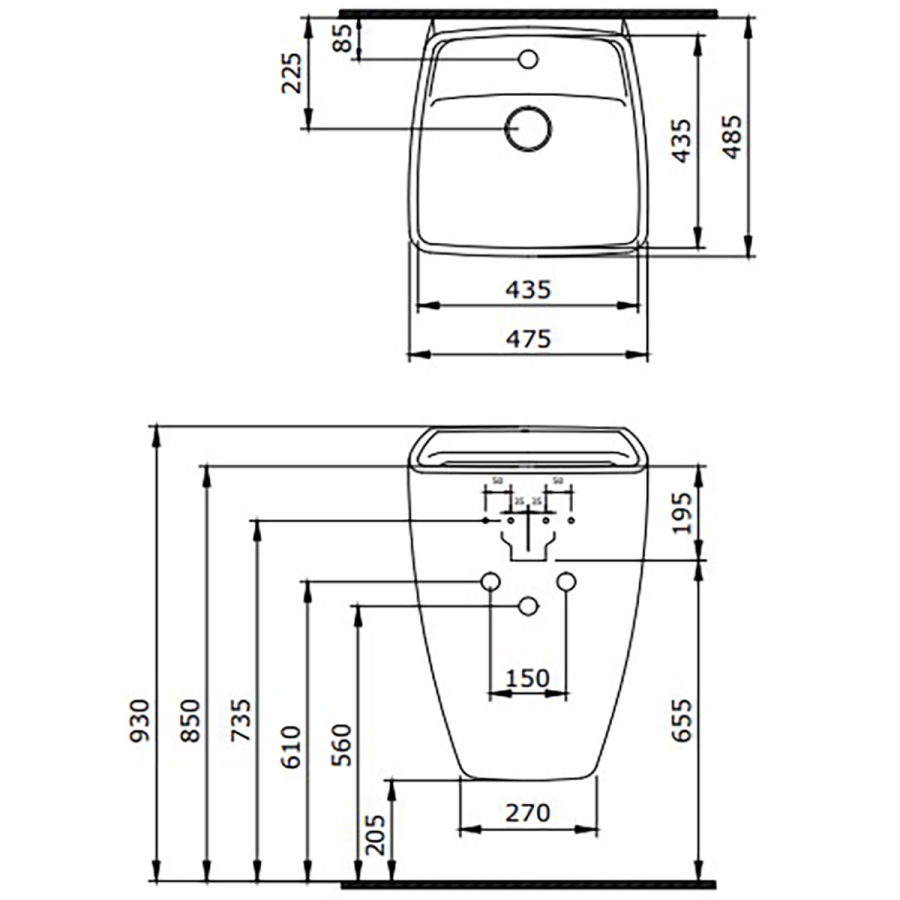 1082-xxx-0126 Tek armatür delikli, su taşma deliksiz