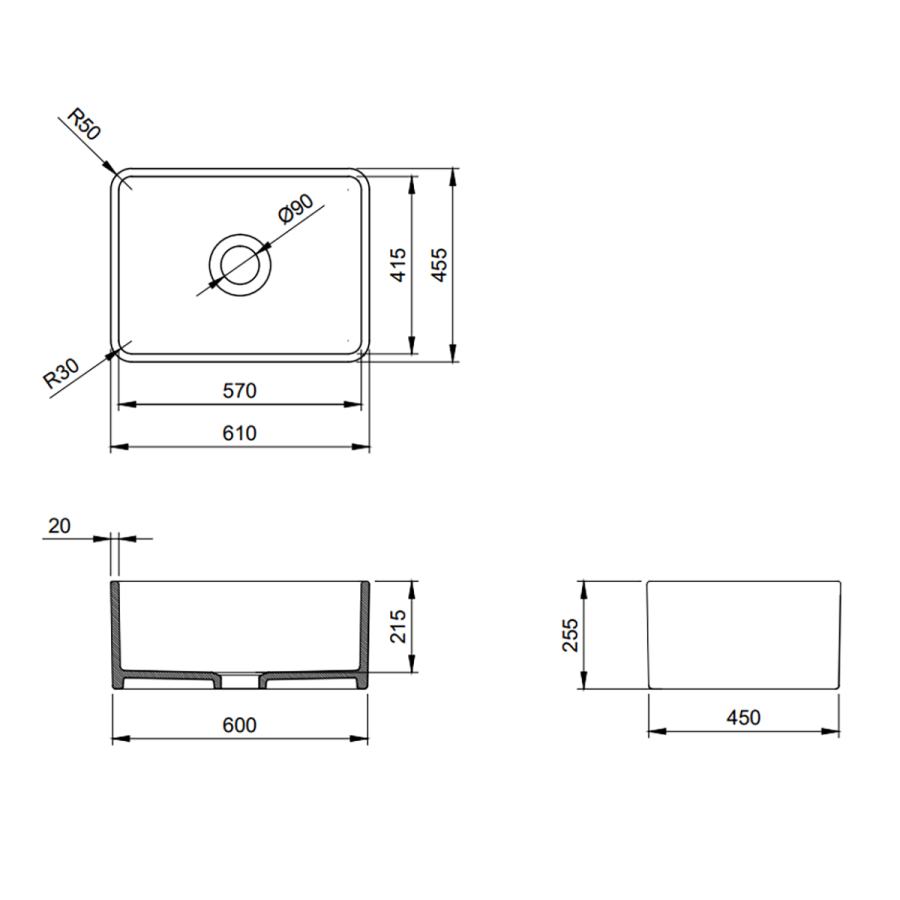 Bocchi Lavello 61 cm Dekorlu Mutfak Eviyesi Mat Antrasit