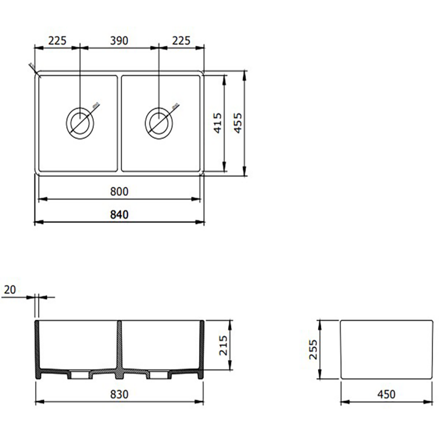 Bocchi Lavello 85 cm Çift Gözlü Mutfak Eviyesi Mat Siyah