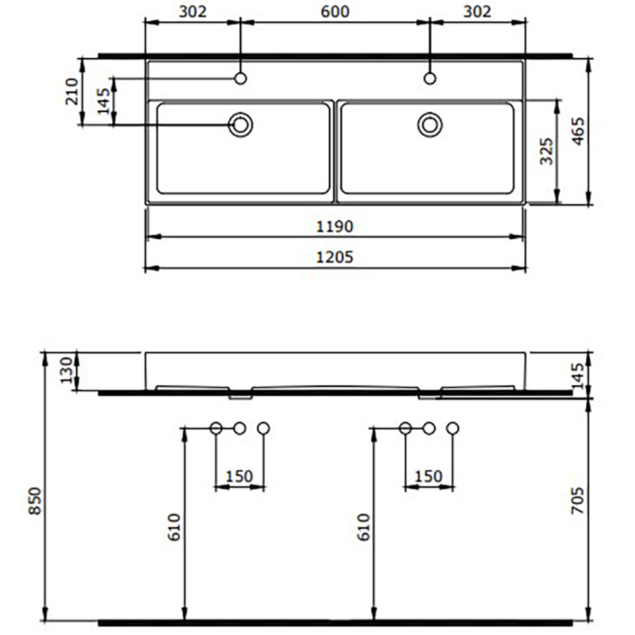 Bocchi Milano 120 cm Çift Gözlü Tezgah Üstü Lavabo Mat Petrol Mavisi