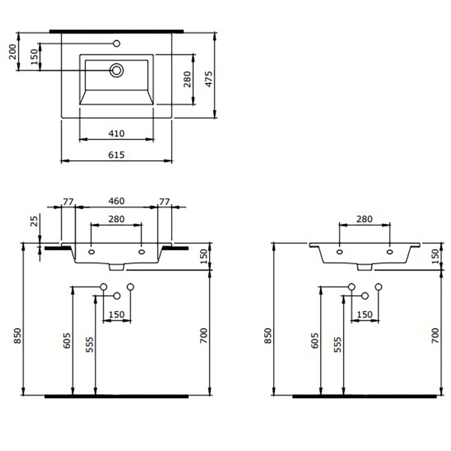 1161-xxx-0126 Tek armatür delikli, su taşma delikli