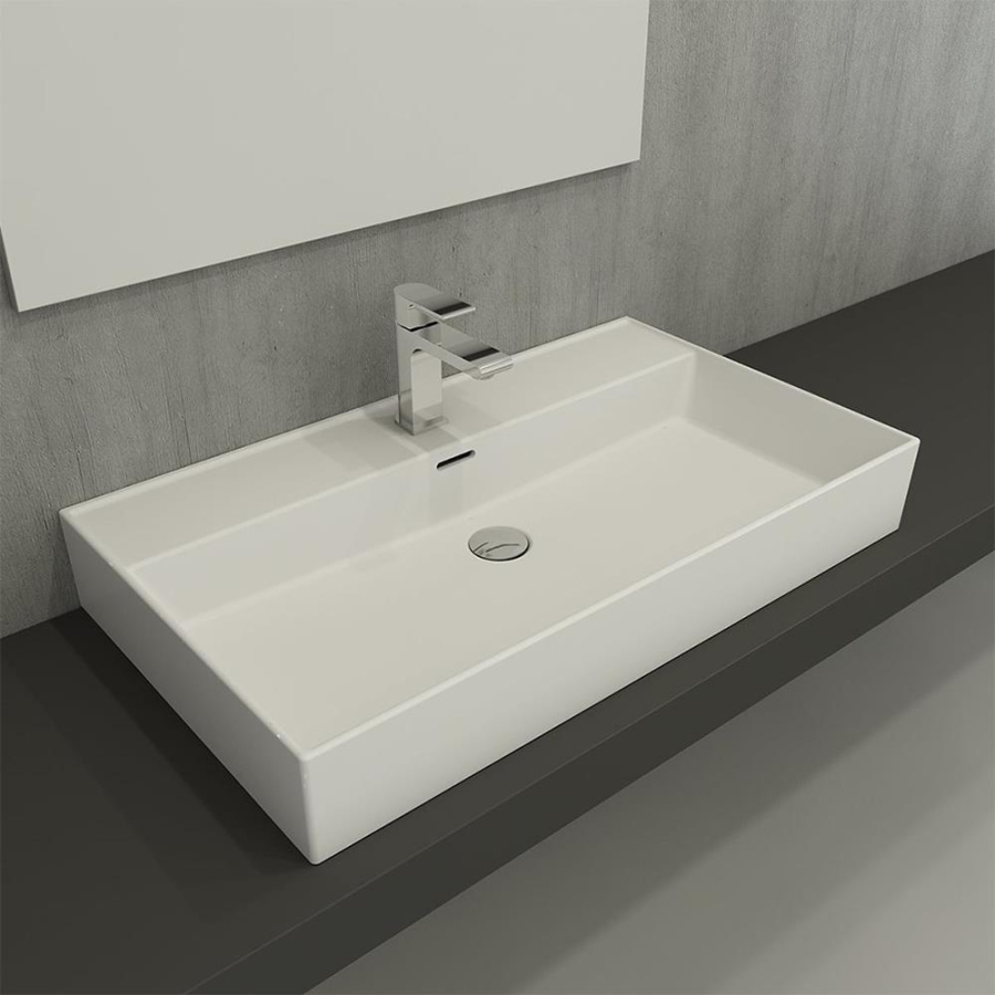 Bocchi Milano Tezgah Üstü Lavabo 80 cm Mat Beyaz 1377-002-0126