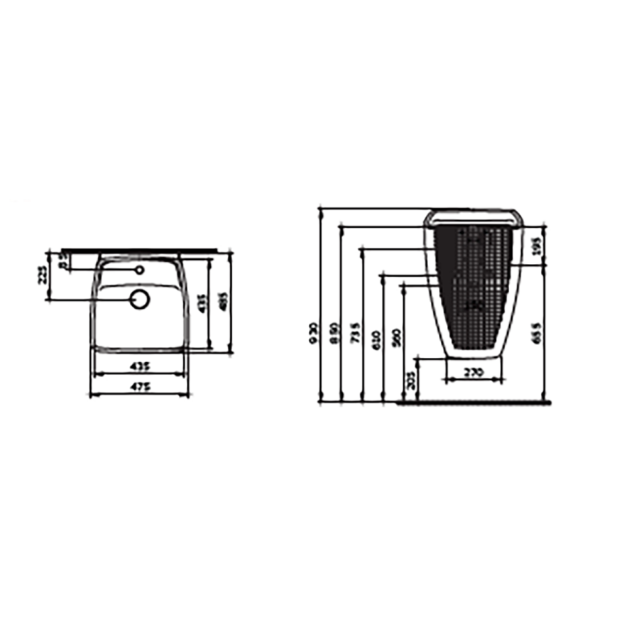 1654-xxx-0126 Tek armatür delikli, su taşma