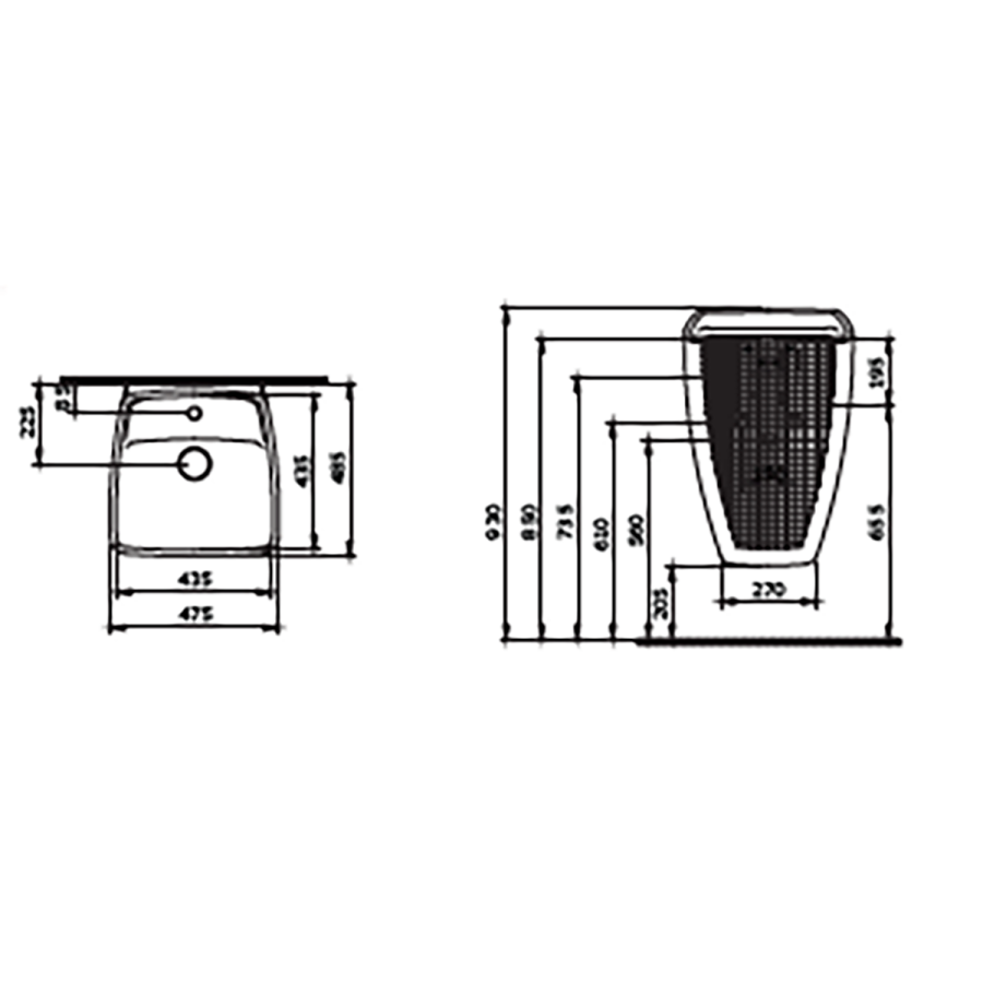 1654-xxx-0126 Tek armatür delikli, su taşma