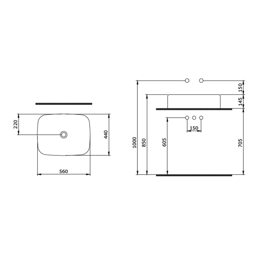 Armatür deliksiz, su taşma delikli