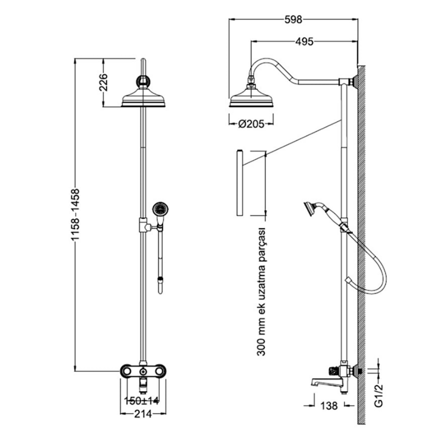 Ürün içeriği: Banyo bataryası, tepe duşu, seramik saplı pirinç el duşu, duş hortumu (1.5 m)