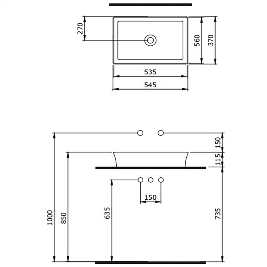 Bocchi Slim Line Dikdörtgen Lavabo 55x38 cm P.Burgonya Bordosu