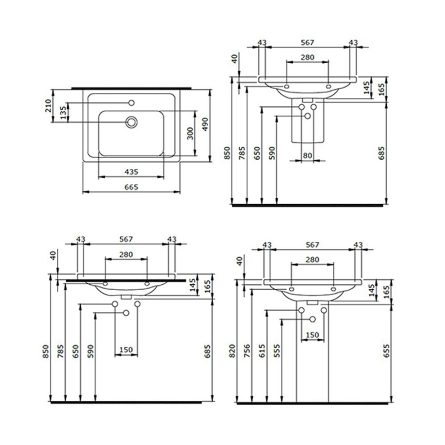 Bocchi Taormina Pro Etajerli Lavabo 3 Armatür Delikli Parlak Beyaz 65 Cm 1007-001-0127