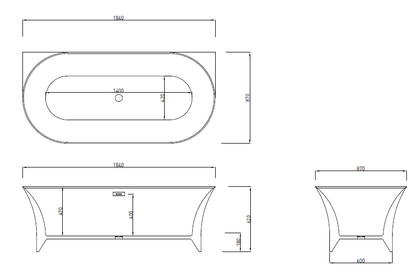 Bocchi Taranto Parlak Beyaz Küvet 184x87 cm