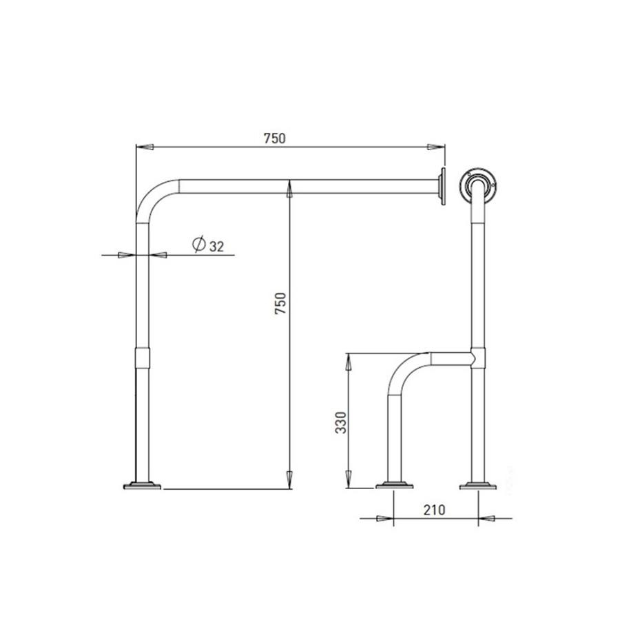 • 304 Paslanmaz Çelik 90° Açılı Duvardan Yere Destek Ayaklı Tutunma Barı