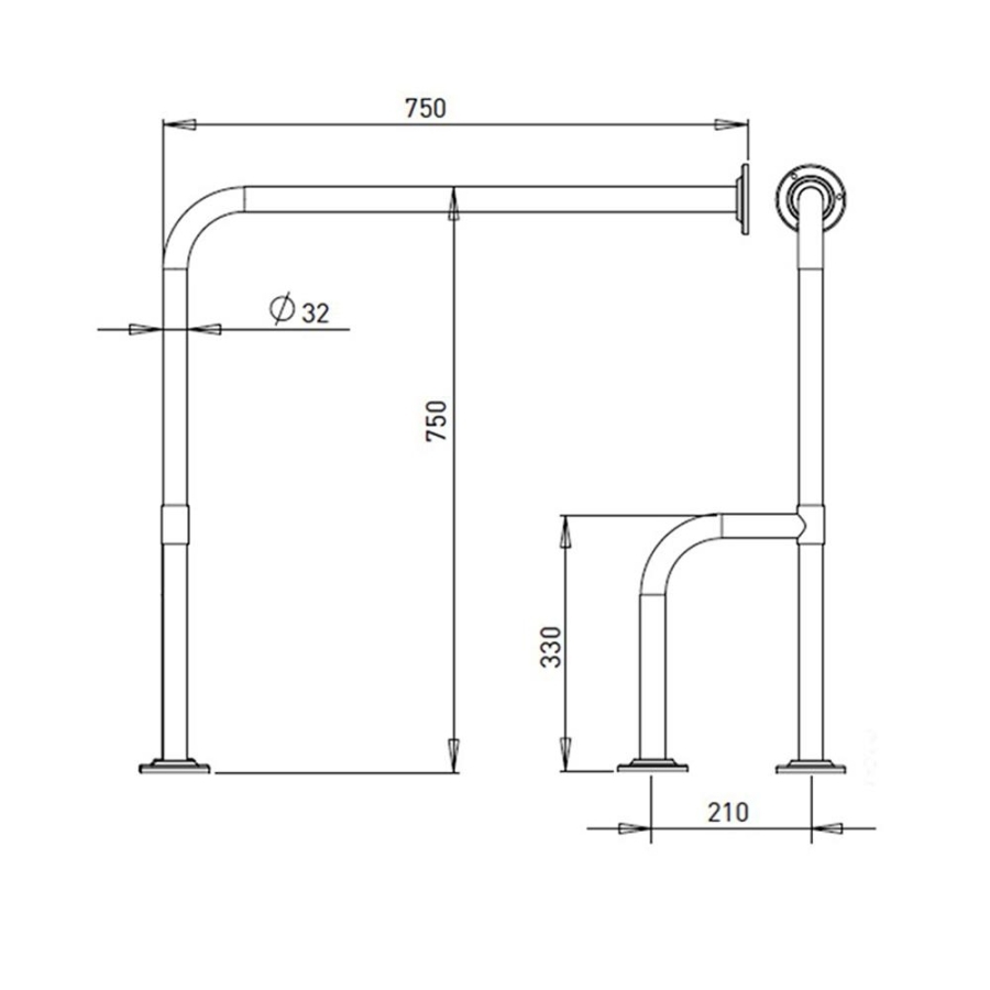 • 304 Paslanmaz çelik 90° açılı duvardan yere destek ayaklı tutunma barı