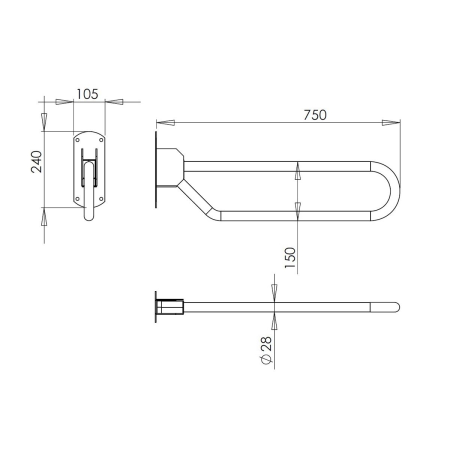 • 304 Paslanmaz çelik katlanabilir tutunma barı.
