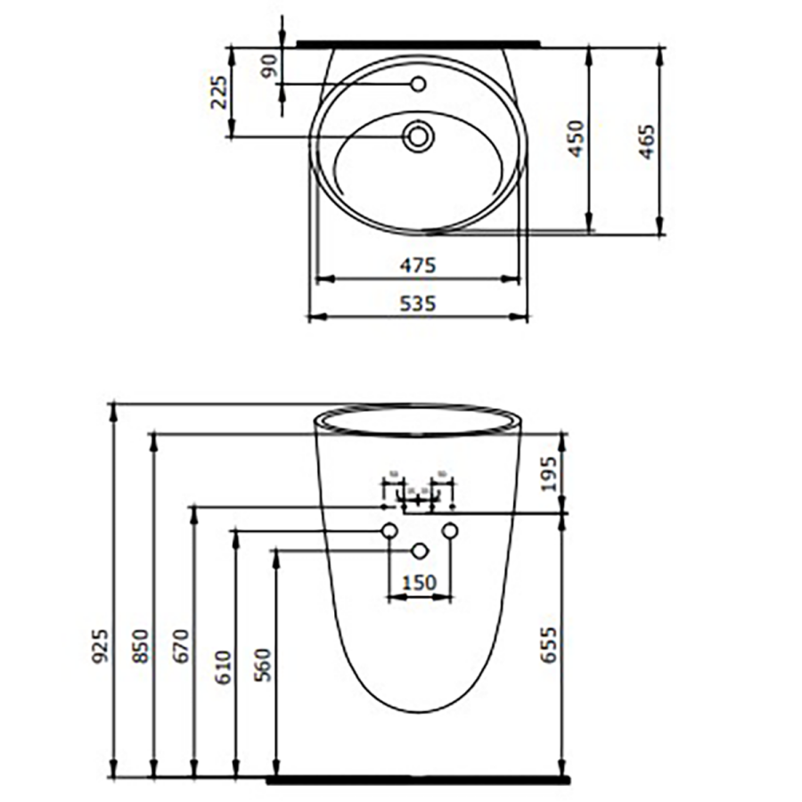 1083-xxx-0126 Tek armatür delikli, su taşma deliksiz