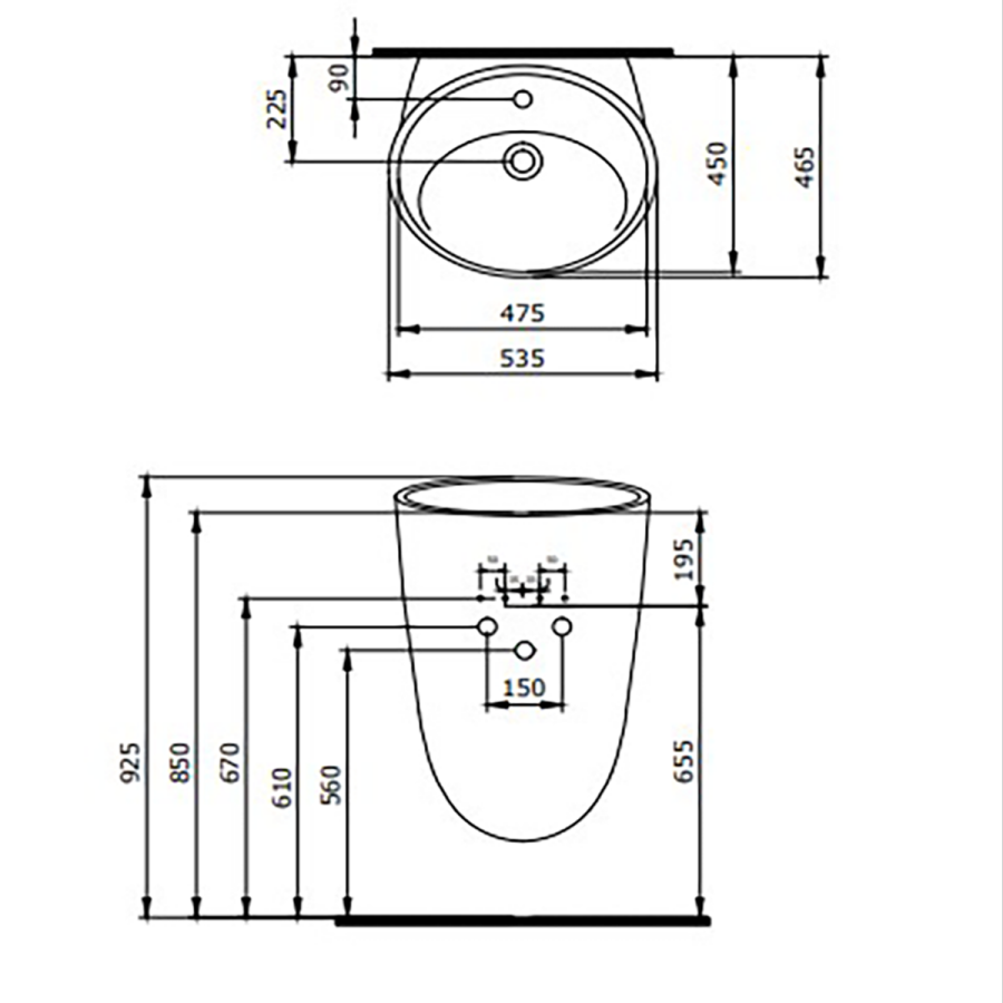 1083-xxx-0126 Tek armatür delikli, su taşma deliksiz