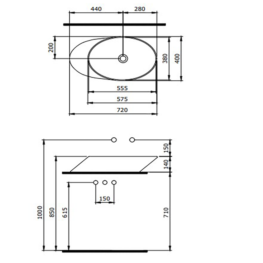Bocchi Vessel Yatay Çanak Lavabo 72 cm Mat Petrol Mavisi