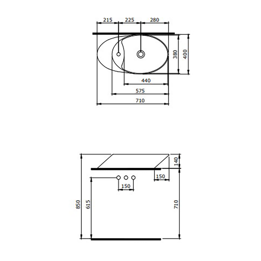 Bocchi Vessel Yatay Çanak Lavabo 72 cm Mat Petrol Mavisi