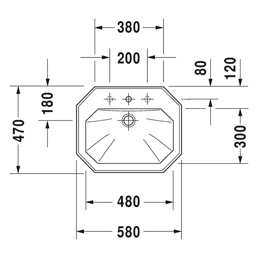 Duravit Lavabo Üstten Geçme 1930 Seri 58 cm Üç Delikli 0476580030