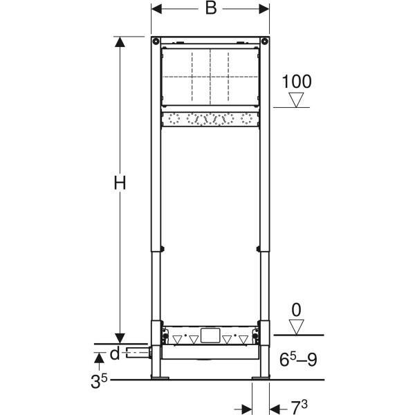 Duş için Geberit Duofix elemanı, 130 cm, duvar süzgeci ile, sıva altı ankastre batarya, girişte 65–90 mm şap yüksekliği için