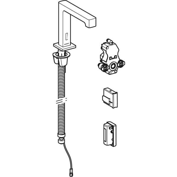 Geberit lavabo bataryası Brenta, tezgah üstü, jeneratörlü, sıva altı fonksiyon kutusu ile: Parlak krom, Mikser=Mikserli