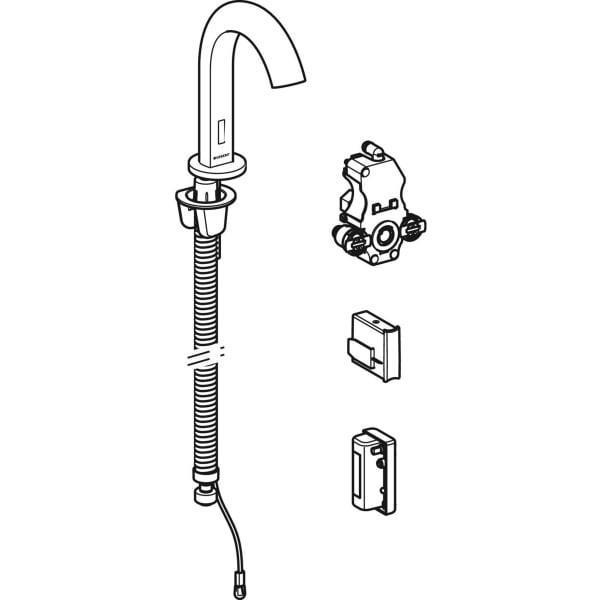 Geberit lavabo bataryası Piave, tezgah üstü, jeneratörlü, sıva altı fonksiyon kutusu için: Parlak krom, Mikser=Mikserli