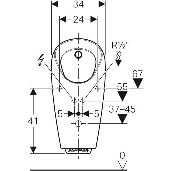 Geberit pisuvar Selva, entegre deşarj kontrolü için: Giriş=Arka, Beyaz