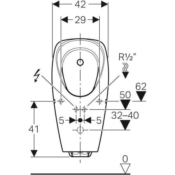 Geberit pisuvar Tamina, entegre deşarj kontrolü için: Giriş=Arka, Beyaz