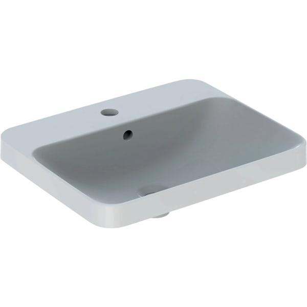 Geberit VariForm dikdörtgen çanak lavabo, batarya banklı: B=55cm, T=45cm, Batarya deliği=Orta, Taşma deliği=Görünür, Beyaz