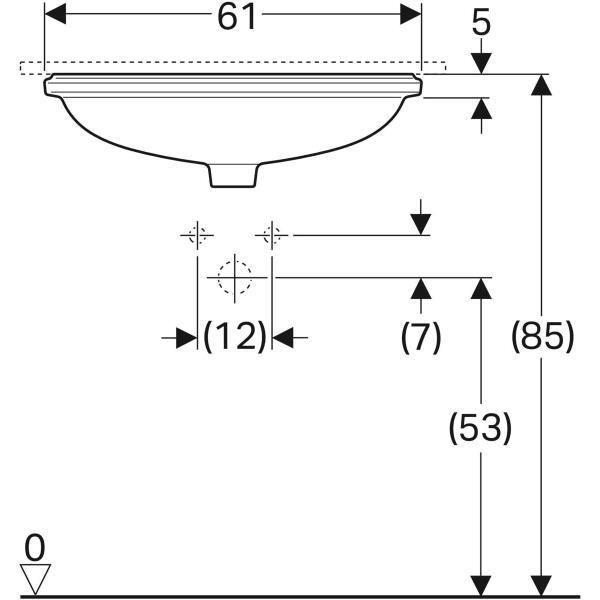 Geberit VariForm eliptik tezgah altı lavabo: T=49cm, Batarya deliği=Yok, Taşma deliği=Yok, Beyaz