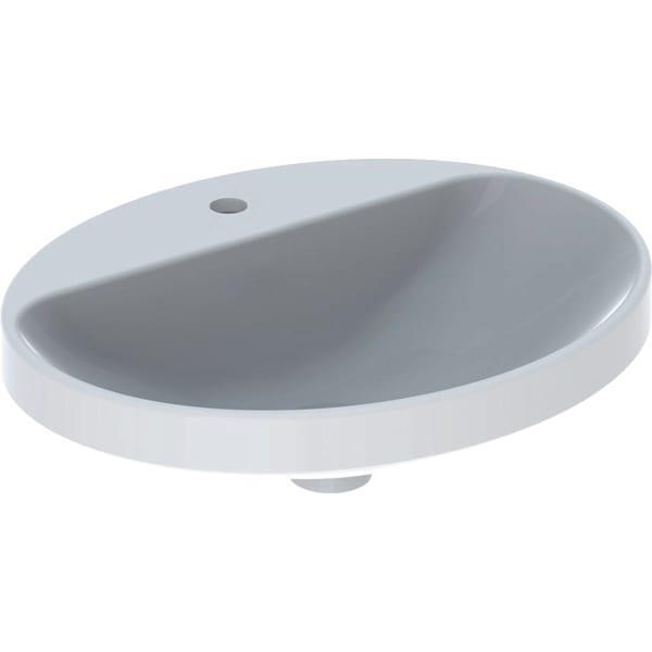 Geberit VariForm oval çanak lavabo, batarya banklı: B=55cm, T=45cm, Batarya deliği=Orta, Taşma deliği=Yok, Beyaz