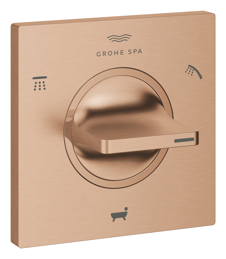 Evolved for the modern bathroom GROHE Allure, with its slim, defined profile and organic transitions, invites interaction. Intuitive control meets incredible precision in this crafted collection where performance and user comfort are both treated as equally essential. This Allure 3-way diverter lets you switch effortlessly between three different outlets: bath spout, head and hand shower. It is for use with the concealed body 29033000 (sold separately). It has an adjustable installation depth of 66-113mm and a bayonet union escutcheon. Finished in the extra scratch-resistant GROHE StarLight PVD coating this diverter will stay looking pristine for years to come. The new GROHE Allure – precision in form and function.