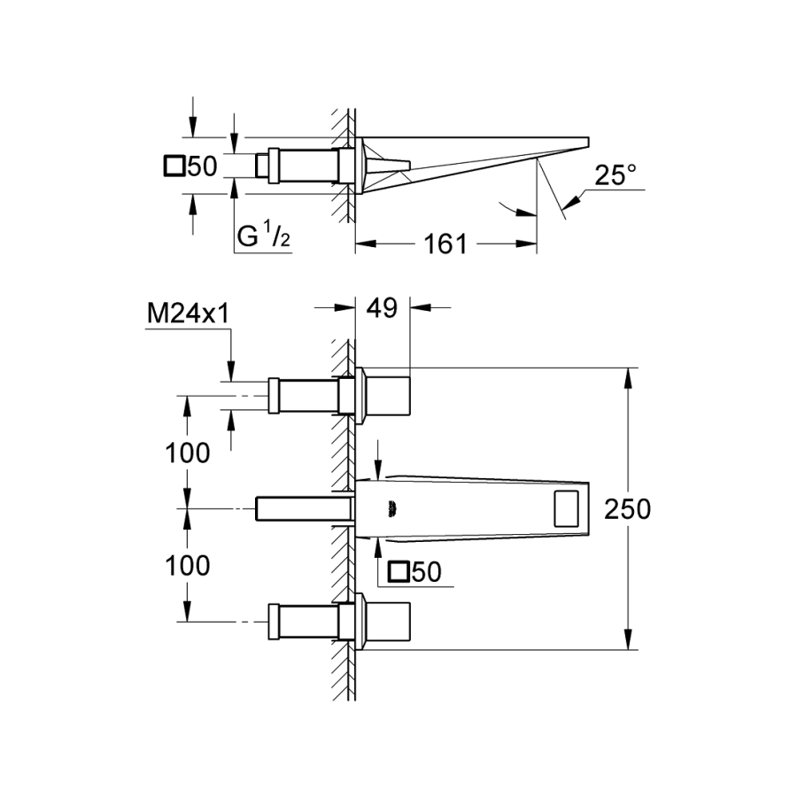 Grohe Lineare 3 Delikli Lavabo Bataryası 1/2" M-Boyut - 20304001