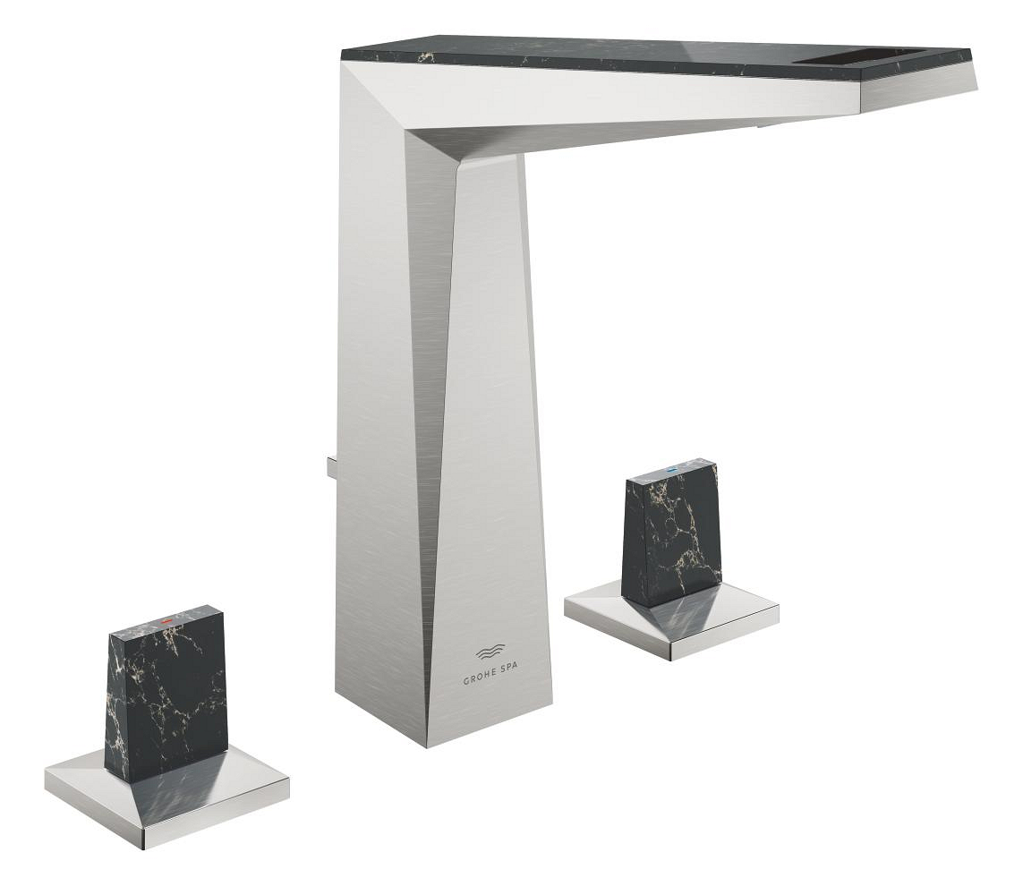 If you want your personal wellness retreat to reflect your unique personality, this GROHE Allure Brilliant mixer can make a space feel special. Part of the Allure Brilliant Private Collection under the premium sub-brand GROHE SPA, this three-hole basin mixer in timeless Supersteel finish is as visually bold as it is technically advanced, offering performance and optimum user comfort as well as making a confident design statement. The precise planes and angles give it a sculpted, futuristic look. There are many options for customisation – in addition to three chic colours GROHE offers a palette of individualised handles and inserts, including these Caesarstone Vanilla Noir trapeze handles. The possibility of having one-of-a-kind pieces only enhances Allure Brilliant’s exclusive aura. As you would expect from such a sophisticated piece of engineering, the Allure Brilliant basin mixer is constructed in the best materials and meets the contemporary expectation of sustainability, limiting the flow to 5 l/min without compromising on performance. And the useful pop-up waste is operated by a discreet rod on the back of the tap and allows easy opening and closing without getting your hands wet. With matching fittings across basin, shower and bathtub for a seamless look, Allure Brilliant from GROHE SPA creates designer dream spa bathrooms where the ideal of Health Through Water can be enjoyed to the full.