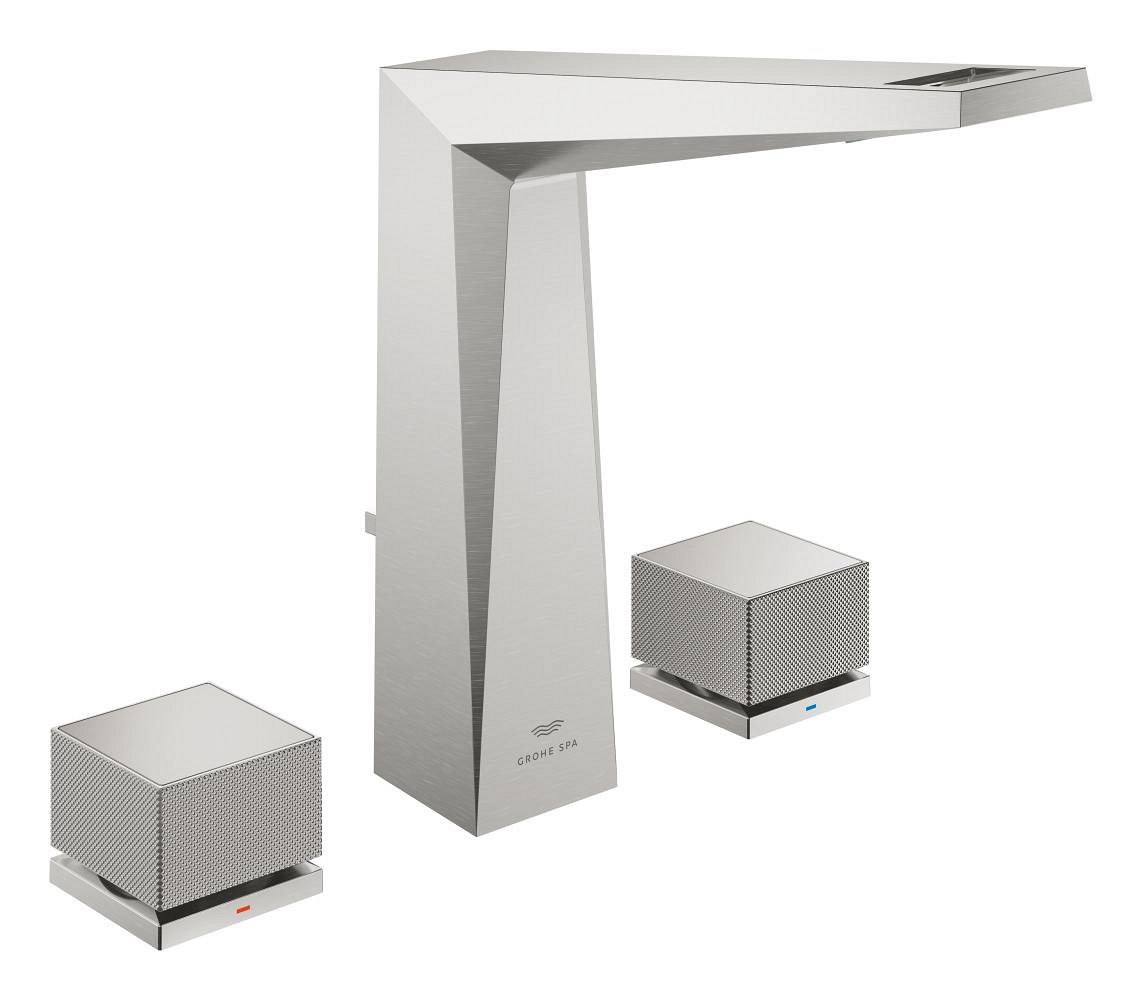 Elevating bathroom design to the level of personal expression, the Allure Brilliant basin mixer allows for the creation of a truly welcoming space. Part of the Allure Brilliant Private Collection under the premium sub-brand GROHE SPA, this three-hole basin mixer in timeless Supersteel finish is as visually bold as it is technically advanced, offering performance and optimum user comfort as well as making a confident design statement. The precise planes and angles give it a sculpted, futuristic look. Even the knurling on the sides of the handles follows the mixer’s jewel-like appearance, enhancing the exclusive aura. There are many options for customisation – in addition to three chic colours GROHE offers a palette of individualised handles and inserts, including Caesarstone quartz detailing. As you would expect from such a sophisticated piece of engineering, the Allure Brilliant basin mixer is constructed in the best materials, and meets the contemporary expectation of sustainability, limiting the flow to 5 l/min without compromising on performance. And the useful pop-up waste is operated by a discreet rod on the back of the tap and allows easy opening and closing without getting your hands wet. With matching fittings across basin, shower and bathtub for a seamless look, Allure Brilliant from GROHE SPA creates designer dream spa bathrooms where the ideal of Health Through Water can be enjoyed to the full.