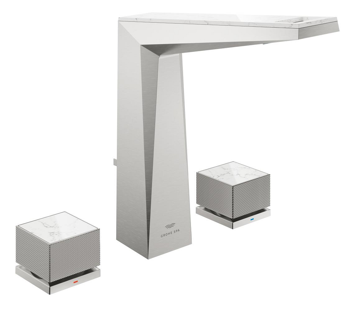 Not only does this Allure Brilliant basin mixer offer cutting-edge styling and optimum performance, but the options for customisation make it perfect for any project. Part of the Allure Brilliant Private Collection under the premium sub-brand GROHE SPA, this three-hole basin mixer in timeless Supersteel finish is as visually bold as it is technically advanced, offering performance and optimum user comfort as well as making a confident design statement. The precise planes and angles give it a sculpted, futuristic look. Even the knurling on the sides of the handles follows the mixer’s jewel-like appearance. There are many options for customisation – in addition to three chic colours GROHE offers a palette of individualised handles and inserts, including these Caesarstone White Attica knob handles. The possibility of having one-of-a-kind pieces only enhances Allure Brilliant’s exclusive aura. As you would expect from such a sophisticated piece of engineering, the Allure Brilliant basin mixer is constructed in the best materials, and meets the contemporary expectation of sustainability, limiting the flow to 5 l/min without compromising on performance. And the useful pop-up waste is operated by a discreet rod on the back of the tap and allows easy opening and closing without getting your hands wet. With matching fittings across basin, shower and bathtub for a seamless look, Allure Brilliant from GROHE SPA creates designer dream spa bathrooms where the ideal of Health Through Water can be enjoyed to the full.
