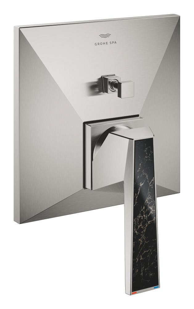 For a world of style options backed up by premium design, this GROHE Allure Brilliant bath/shower mixer is a makeover inspiration. Part of the Allure Brilliant Private Collection under the premium sub-brand GROHE SPA, this single-lever mixer in timeless Supersteel finish is as visually bold as it is technically advanced, offering performance and optimum user comfort as well as making a confident design statement. The precise planes and angles give it a sculpted, futuristic look. There are many options for customisation – in addition to three chic colours GROHE offers a palette of individualised handles and inserts, including this Caesarstone Vanilla Noir handle. The possibility of having one-of-a-kind pieces only enhances Allure Brilliant’s exclusive aura. Made in Germany, this Allure Brilliant mixer is designed to be swiftly installed with the GROHE Rapido Smartbox (35600000/35604000), sold separately. A sleek automatic 2-way diverter allows you to switch effortlessly between shower and bath inlet or head and hand shower. It is constructed in the best materials, while the hard-wearing ceramic cartridge inside offers smooth, precise lever control. With matching fittings across basin, shower and bathtub for a seamless look, Allure Brilliant from GROHE SPA creates designer dream spa bathrooms where the ideal of Health Through Water can be enjoyed to the full.