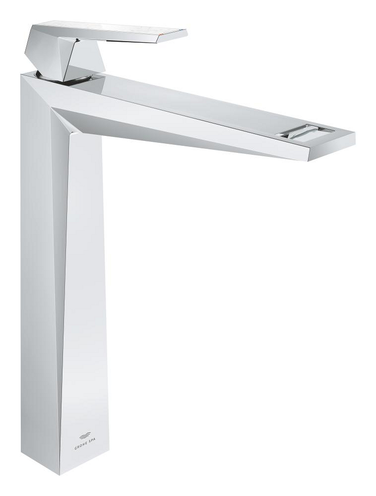 The GROHE Allure Brilliant basin mixer for vessel basins offers bold personalised styling with premium features. Part of the Allure Brilliant Private Collection under the premium sub-brand GROHE SPA, this basin mixer in dazzling classic chrome finish is as visually bold as it is technically advanced, offering performance and optimum user comfort as well as making a confident design statement. The precise planes and angles give it a sculpted, futuristic look. There are many options for customisation – in addition to three chic colours GROHE offers a palette of individualised handles and inserts, including this Caesarstone White Attica handle. The possibility of having one-of-a-kind pieces only enhances Allure Brilliant’s exclusive aura. Designed for quick and easy monobloc installation, the Allure Brilliant basin mixer is constructed in the best materials and meets the contemporary expectation of sustainability, limiting the flow to 5l/min without compromising on performance, while the hard-wearing ceramic cartridge inside offers smooth, precise lever control. With matching fittings across basin, shower and bathtub for a seamless look, Allure Brilliant from GROHE SPA creates designer dream spa bathrooms where the ideal of Health Through Water can be enjoyed to the full.