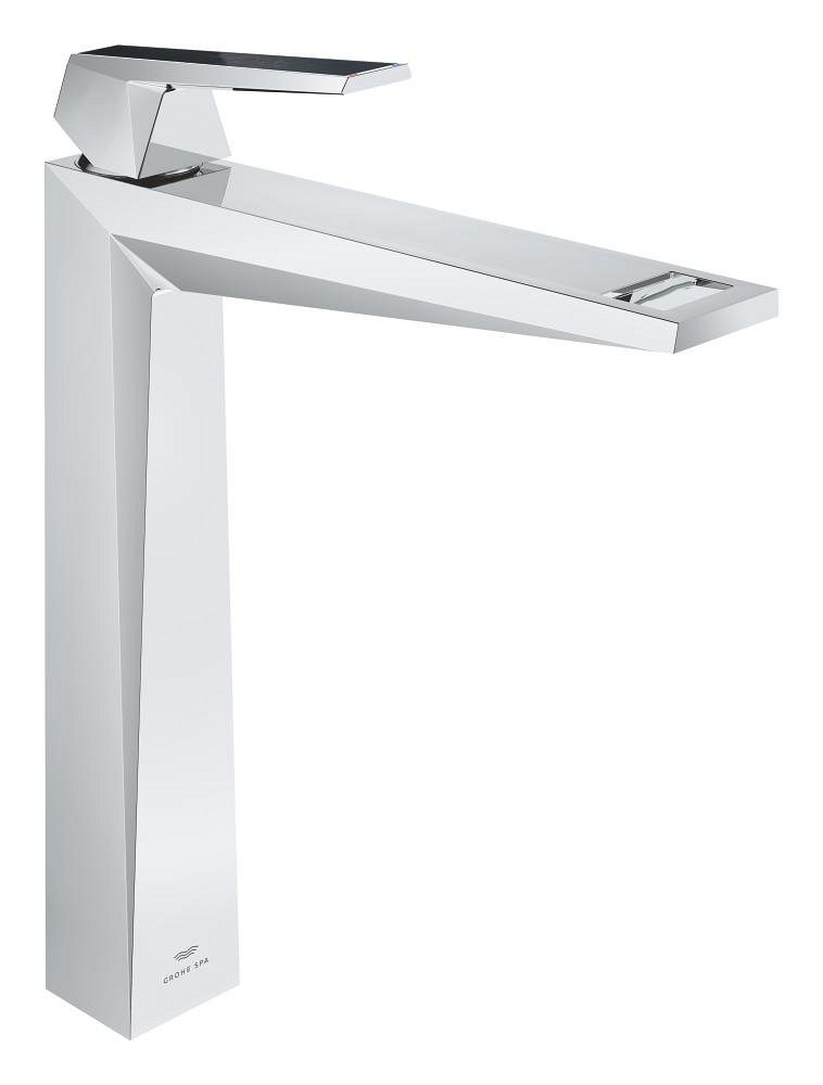 The GROHE Allure Brilliant basin mixer for vessel basins breathes sophistication and style. Part of the Allure Brilliant Private Collection under the premium sub-brand GROHE SPA, this basin mixer in dazzling classic chrome finish is as visually bold as it is technically advanced, offering performance and optimum user comfort as well as making a confident design statement. The precise planes and angles give it a sculpted, futuristic look. There are many options for customisation – in addition to three chic colours GROHE offers a palette of individualised handles and inserts, including this Caesarstone Vanilla Noir handle. The possibility of having one-of-a-kind pieces only enhances Allure Brilliant’s exclusive aura. Designed for quick and easy monobloc installation, the Allure Brilliant basin mixer is constructed in the best materials and meets the contemporary expectation of sustainability, limiting the flow to 5l/min without compromising on performance, while the hard-wearing ceramic cartridge inside offers smooth, precise lever control. With matching fittings across basin, shower and bathtub for a seamless look, Allure Brilliant from GROHE SPA creates designer dream spa bathrooms where the ideal of Health Through Water can be enjoyed to the full.